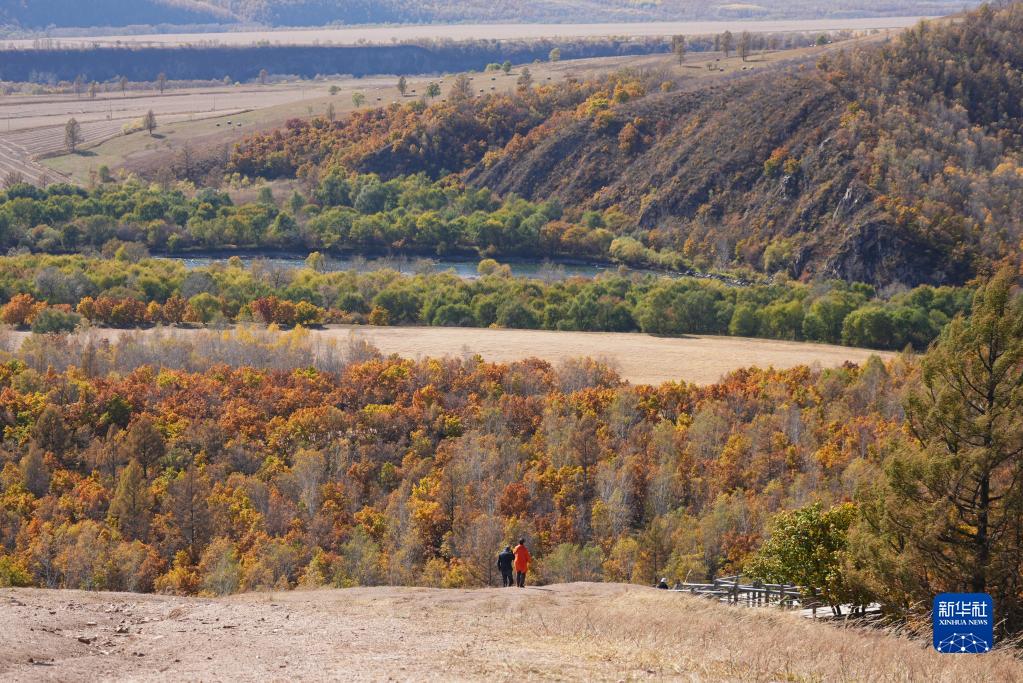 游客在扎蘭屯市柴河鎮(zhèn)十大灣欣賞秋日風光(9月27日攝)。新華社記者 恩浩 攝