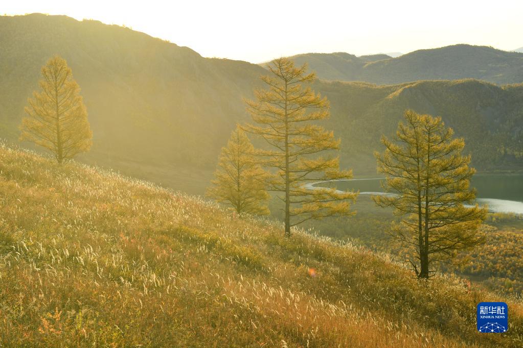 9月28日拍攝的扎蘭屯市柴河鎮(zhèn)同心天池秋日風光。新華社記者 貝赫 攝