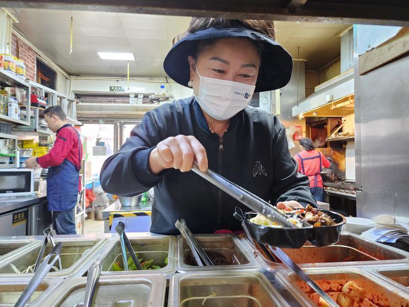 盡管9月23日參加韓國駐西安總領事館舉辦的韓國國慶日招待會很晚才回去,第二天一大早,文美卿仍如往常一樣來到自己在西安綠地中央廣場韓國風情街經(jīng)營的明東碳烤韓國料理店。“最近我們剛開展外賣業(yè)務,我來幫著做一些餐食包裝和準備工作。”文美卿說。