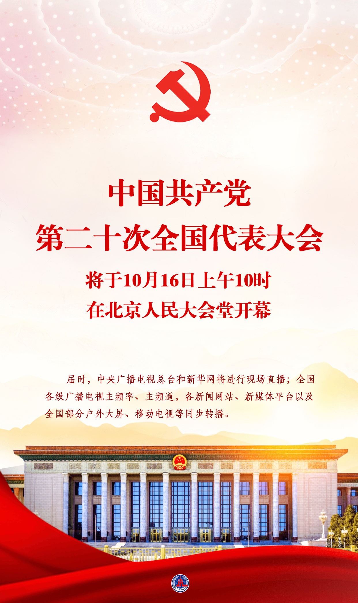 中國(guó)共產(chǎn)黨第二十次全國(guó)代表大會(huì)將于16日上午10時(shí)在北京人民大會(huì)堂開(kāi)幕。