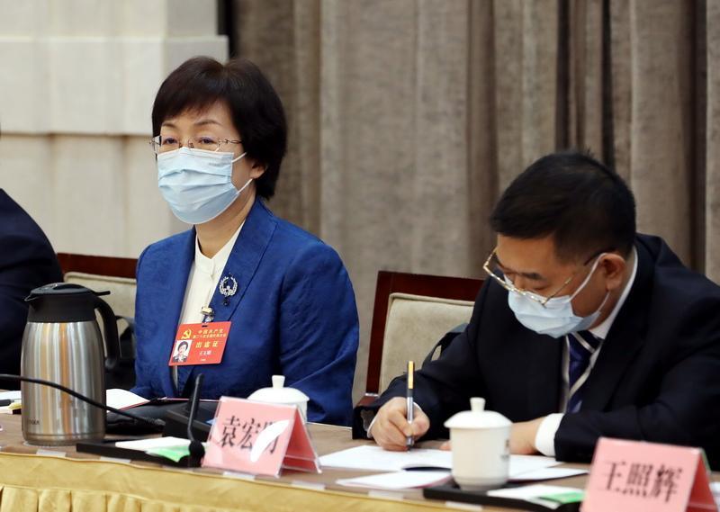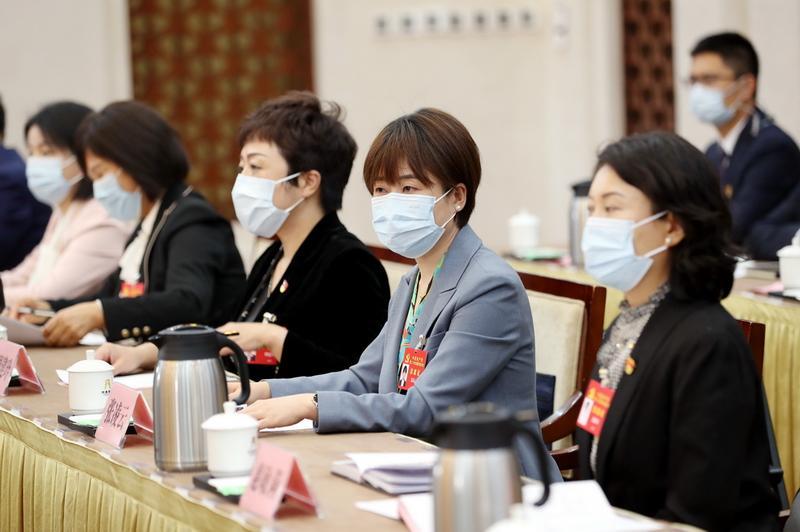 按照中國共產(chǎn)黨第二十次全國代表大會統(tǒng)一安排,陜西省代表團(tuán)10月15日在住地召開全體會議。左一為路生梅代表。