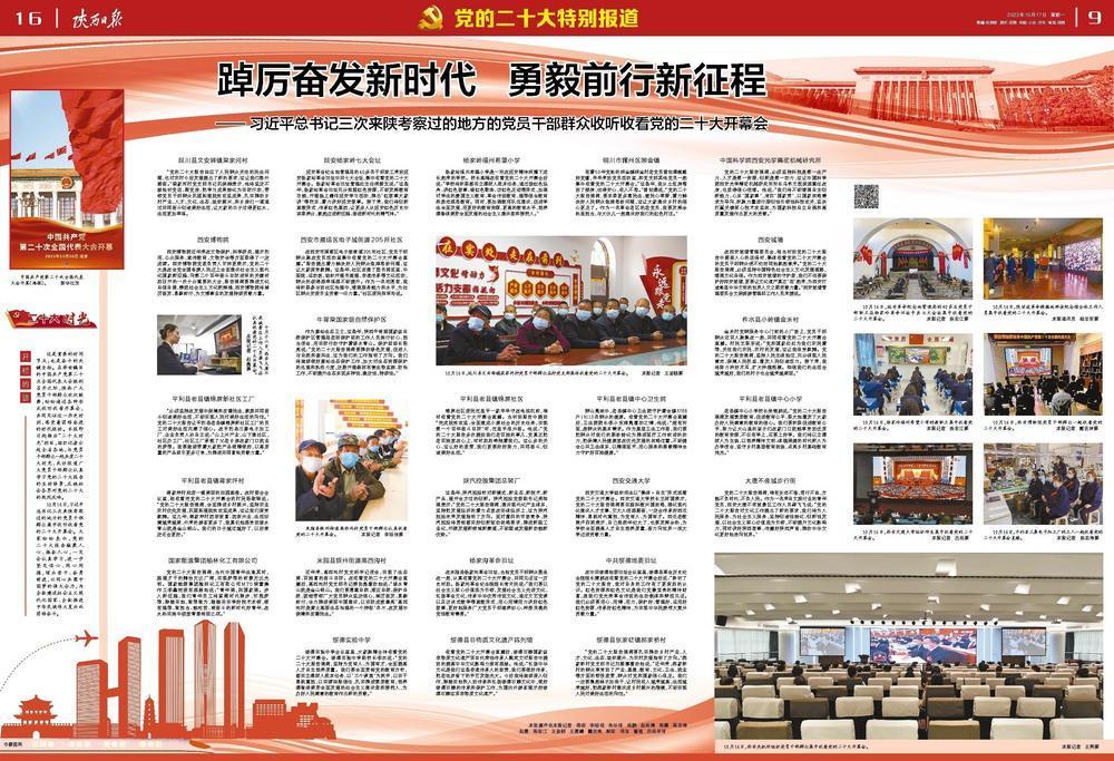 這是重要的時間節(jié)點,也是奮斗的關(guān)鍵坐標(biāo)。在舉世矚目的中國共產(chǎn)黨第二十次全國代表大會勝利召開之際,陜西廣大黨員干部群眾歡欣鼓舞,紛紛通過各種形式收聽收看開幕會,共同見證這一歷史時刻,感受著團(tuán)結(jié)奮進(jìn)的時代脈動。本報即日起推出“二十大時光”欄目,組織記者分赴全省各地,與黨員干部群眾一起共度二十大時光,采訪報道廣大黨員干部群眾認(rèn)真學(xué)習(xí)黨的二十大報告的生動場景,反映社會各界對黨的二十大的熱烈反響。