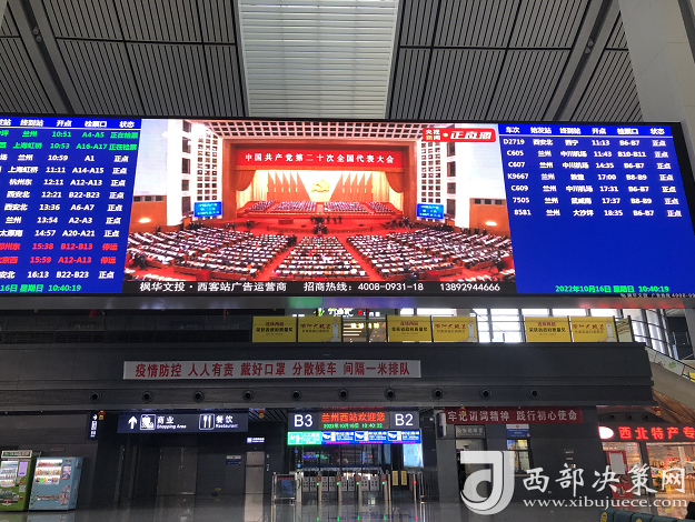 西部決策網(wǎng)訊(記者帥華鋒 杜杰 通訊員 金帥群 黃貴彬) 10月16日上午10時,舉世矚目的中國共產(chǎn)黨第二十次全國代表大會在北京人民大會堂隆重開幕,在甘寧兩?。▍^(qū))的千里鐵道線上處處洋溢著喜慶的氛圍。蘭州鐵路局廣大干部職工懷著無比激動的心情,通過多種形式收聽收看大會直播盛況。同時,面向旅客在蘭州、蘭州西、武威等車站,利用候車室大屏播放黨的二十大開幕式,過往旅客候車間隙紛紛駐足觀看,以最隆重的儀式迎接大會勝利召開。
