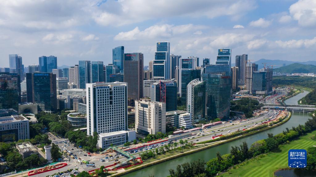 深圳市南山區(qū)大沙河畔的科技園(2020年9月27日攝,無人機(jī)照片)。新華社記者 毛思倩 攝