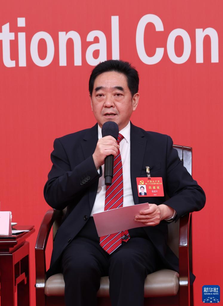 10月18日,中國(guó)共產(chǎn)黨第二十次全國(guó)代表大會(huì)新聞中心舉行集體采訪。黑龍江、上海、江蘇、浙江、安徽、福建、江西代表團(tuán)新聞發(fā)言人出席,介紹代表團(tuán)學(xué)習(xí)討論二十大報(bào)告情況,并回答記者提問。這是福建省委常委、宣傳部部長(zhǎng)張彥在回答記者提問。新華社記者 張玉薇 攝
