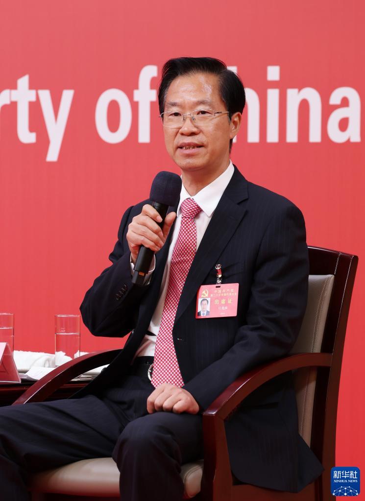 10月18日,中國(guó)共產(chǎn)黨第二十次全國(guó)代表大會(huì)新聞中心舉行集體采訪。黑龍江、上海、江蘇、浙江、安徽、福建、江西代表團(tuán)新聞發(fā)言人出席,介紹代表團(tuán)學(xué)習(xí)討論二十大報(bào)告情況,并回答記者提問。這是江西省委常委、宣傳部部長(zhǎng)莊兆林在回答記者提問。新華社記者 張玉薇 攝