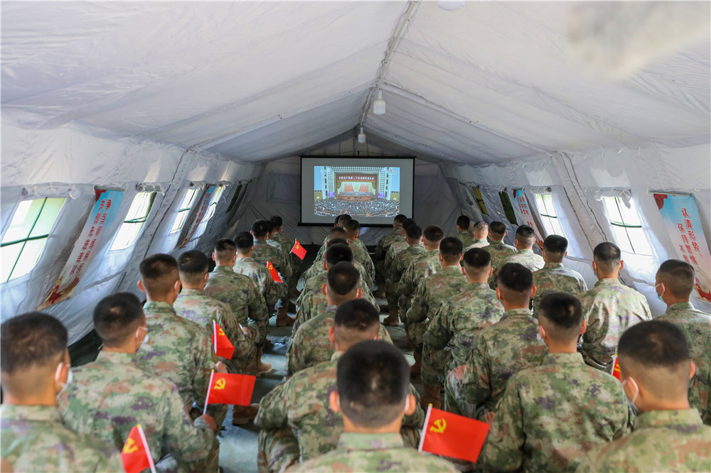 10月16日,中部戰(zhàn)區(qū)陸軍第82集團(tuán)軍某旅官兵收看中國共產(chǎn)黨第二十次全國代表大會(huì)開幕會(huì)。新華社發(fā)(徐超 攝)