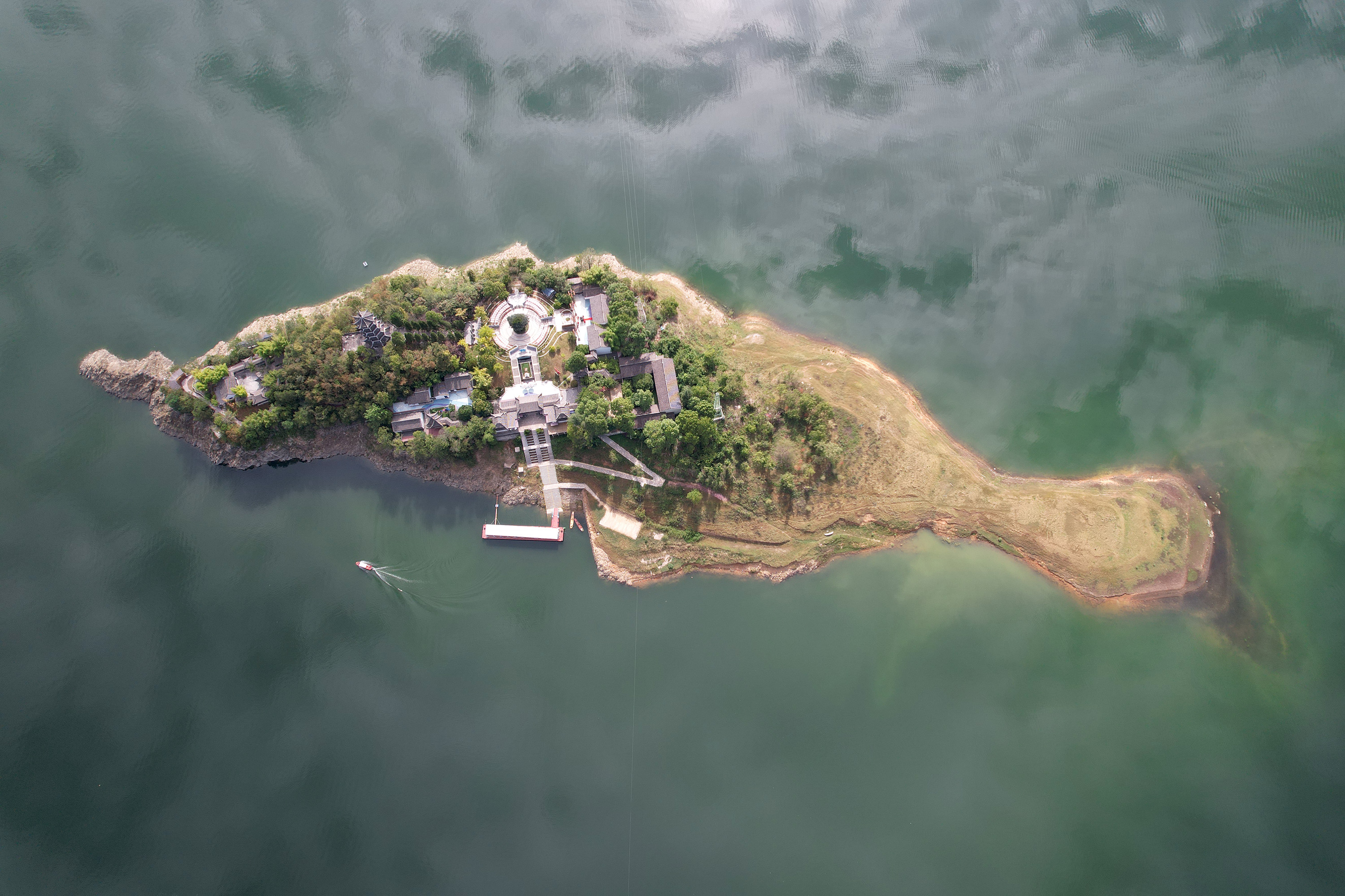 安康市漢濱區(qū)境內(nèi)的漢江瀛湖景色(無(wú)人機(jī)照片 新華社記者 邵瑞 攝)