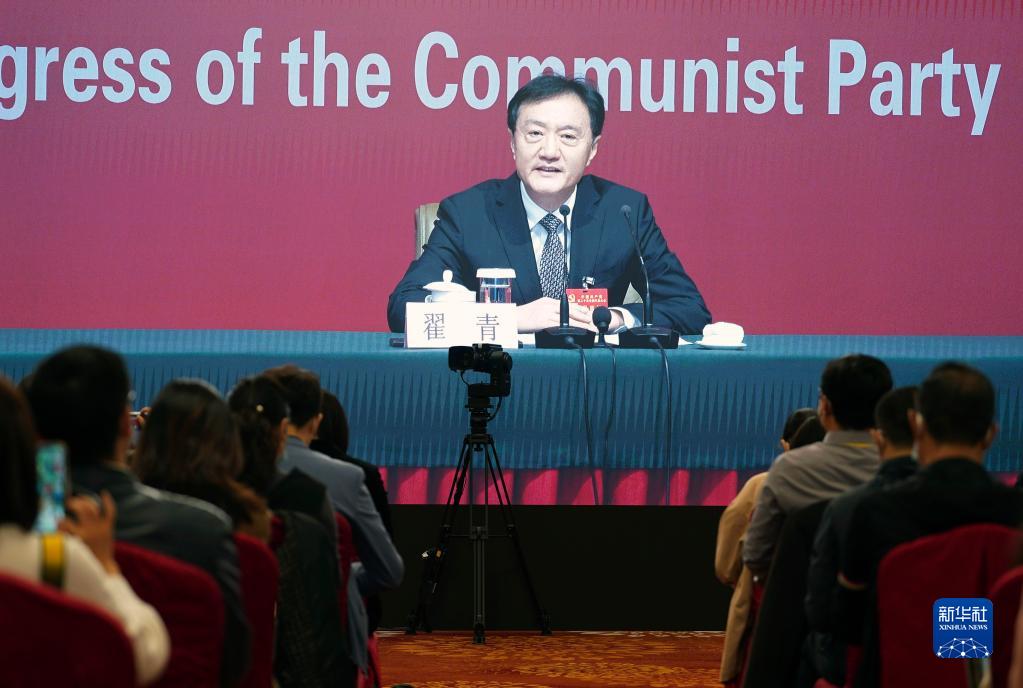 10月21日,中國共產(chǎn)黨第二十次全國代表大會(huì)新聞中心舉行記者招待會(huì)。生態(tài)環(huán)境部黨組成員、副部長翟青圍繞“建設(shè)人與自然和諧共生的美麗中國”主題與記者交流。新華社記者 賈浩成 攝