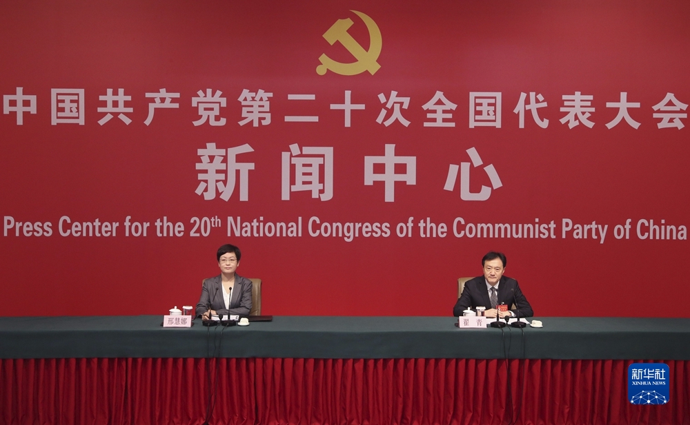 10月21日,中國共產(chǎn)黨第二十次全國代表大會(huì)新聞中心舉行記者招待會(huì)。生態(tài)環(huán)境部黨組成員、副部長翟青圍繞“建設(shè)人與自然和諧共生的美麗中國”主題與記者交流。新華社記者 宋彥樺 攝