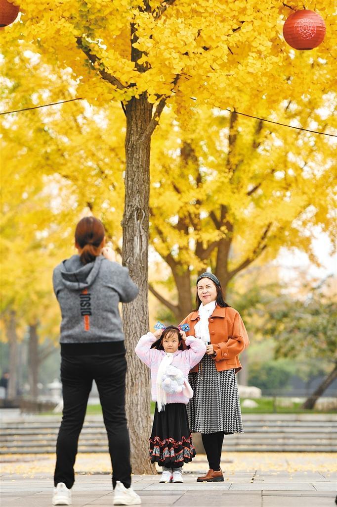 公園里、道路旁、古塔前……滿城盡帶“黃金甲”。遠觀猶如天際升起的一抹金色霞光,近看會發(fā)現(xiàn)葉片隨風搖曳,述說著自然的力量。銀杏葉簌簌飄落,為大地鋪上金黃色的地毯,溫暖治愈,它們最終也會化為土壤,用盡最后的生命來裝點這個季節(jié)。