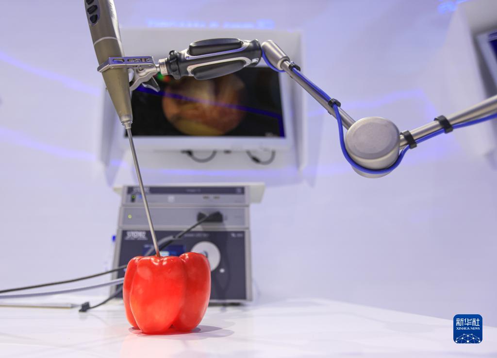 11月7日在第五屆進(jìn)博會(huì)德國卡爾史托斯展臺(tái)拍攝的電子內(nèi)窺鏡。新華社記者 李京 攝