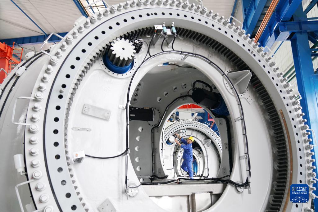 在黑龍江省齊齊哈爾市中國(guó)一重集團(tuán)有限公司風(fēng)電裝備生產(chǎn)制造廠生產(chǎn)車間,工人進(jìn)行生產(chǎn)作業(yè)(2021年7月1日攝)。新華社記者 王建威 攝