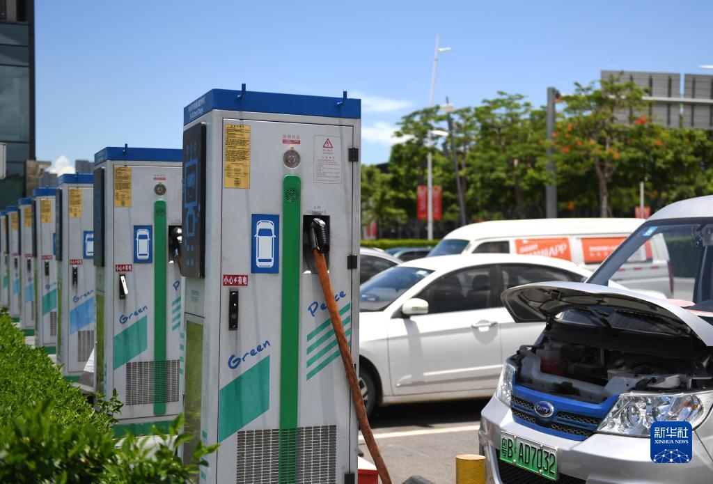 新能源汽車在深圳前海一處停車場(chǎng)充電(2021年7月15日攝)。新華社記者 毛思倩 攝