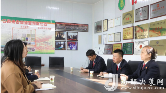 西部決策網(wǎng)訊(記者帥華鋒)  近日,甘肅省隴南市兩當(dāng)縣法院黨組書記、院長鄧剛帶領(lǐng)黨組成員、副院長余淑芳、專委董高彥一行先后到兩當(dāng)興源中藥飲片有限責(zé)任公司和甘肅果老仙酒業(yè)走訪調(diào)研。