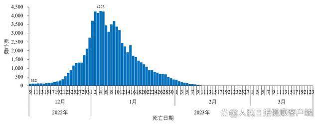 在院新冠病毒感染死亡病例數(shù)方面,于1月4日達(dá)到每日峰值4273例,隨后持續(xù)下降,3月23日為0例。3月17日至 3月23日,31個(gè)?。ㄗ灾螀^(qū)、直轄市)及新疆生產(chǎn)建設(shè)兵團(tuán)醫(yī)療機(jī)構(gòu)累計(jì)在院新冠病毒感染相關(guān)死亡病例 0 例。