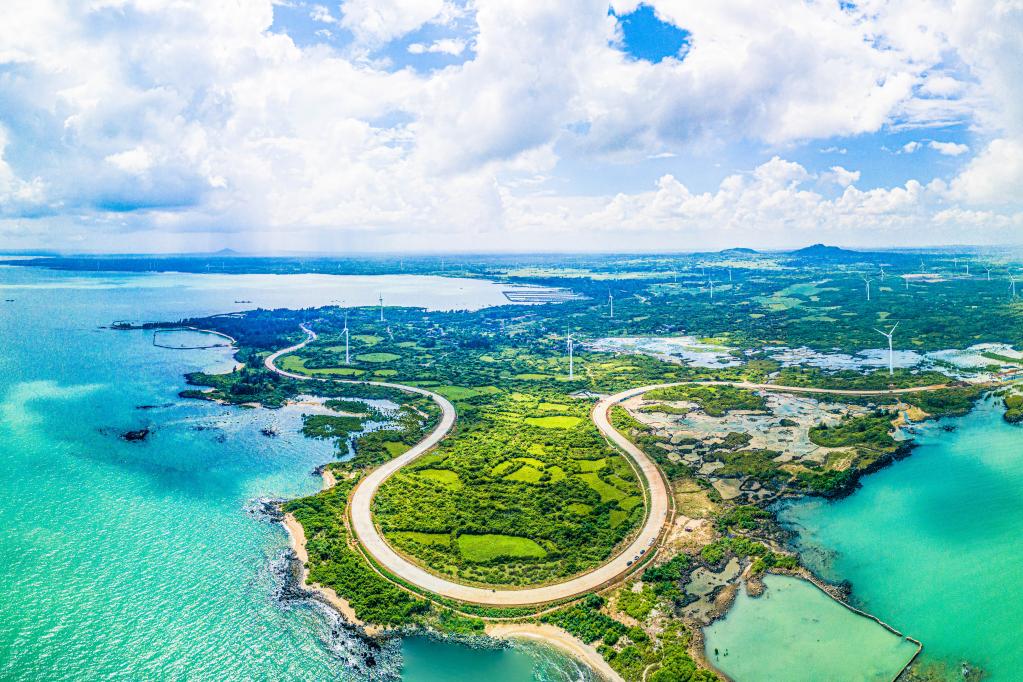 這是2022年10月6日在海南儋州峨蔓火山海岸拍攝的海南環(huán)島旅游公路(無人機(jī)照片)。新華社記者 蒲曉旭 攝