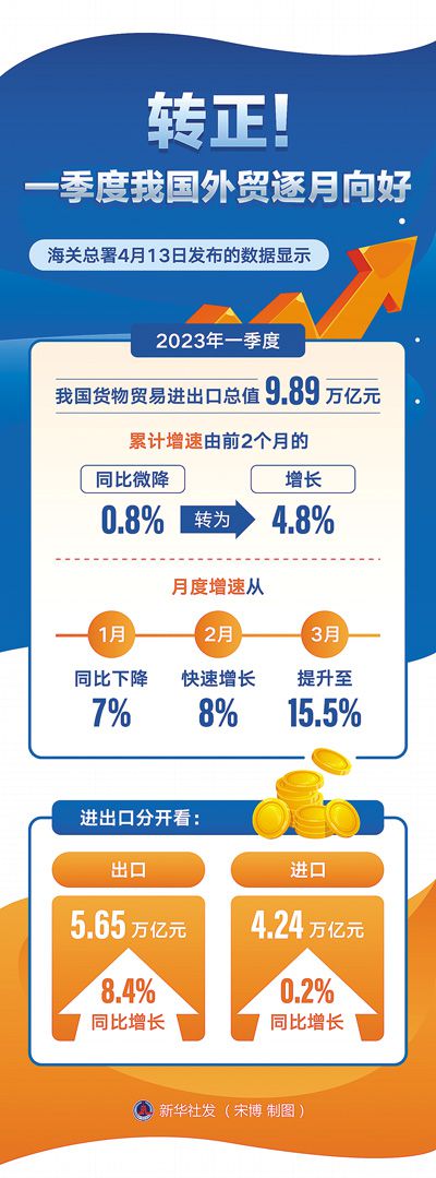 -7%、8%、15.5%,一季度,中國進出口增速逐月提升——保穩(wěn)提質,中國外貿(mào)加速跑。