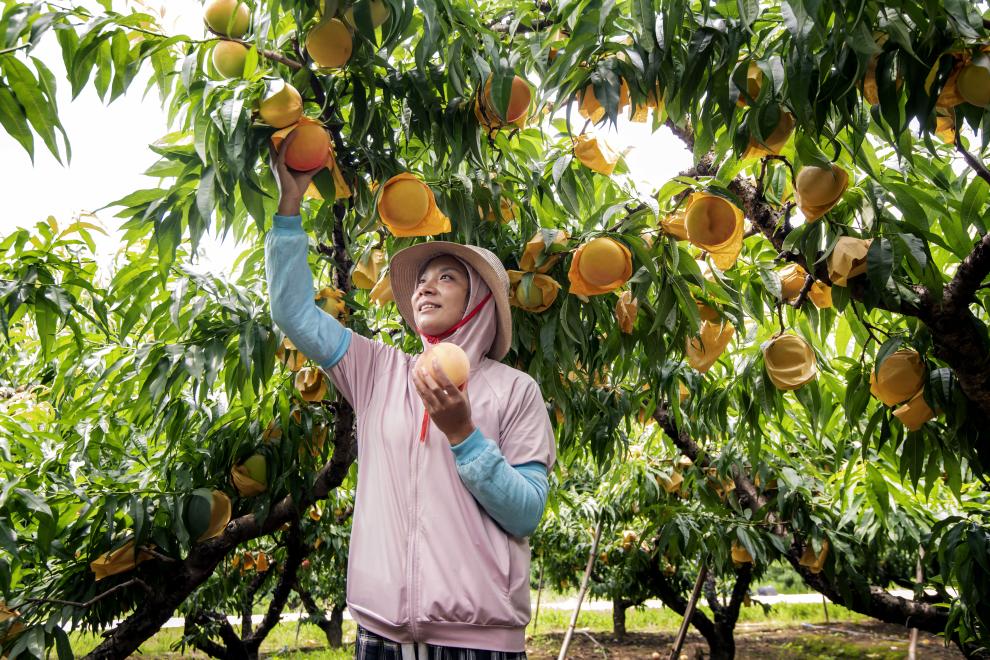 盛夏時(shí)節(jié),江蘇省無(wú)錫市惠山區(qū)陽(yáng)山鎮(zhèn)的空氣中彌漫著香甜的味道。凌晨4點(diǎn),桃源村村民姚文君已在果園開(kāi)始一天的忙碌。暑氣蒸騰,老姚的汗衫濕了又干、干了再濕。