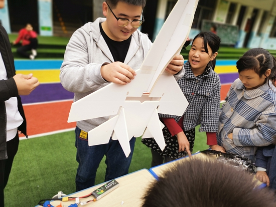 志愿者與孩子們一起制作航模飛機(jī)。受訪者供圖