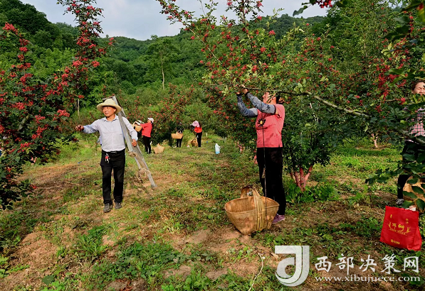 從田間地頭到房前屋后,一片片紅色點(diǎn)綴在綠葉叢中,彷佛置身花椒的海洋。閑庭信步于花椒園內(nèi),熱火朝天的采椒場面迎面而來。盛滿紅彤彤花椒的背簍、簸箕,還有不時(shí)從花椒園里出來的歡笑聲,繪就成一幅幅花椒豐收的錦繡圖景。