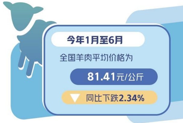 活羊價(jià)格下跌,帶動(dòng)羊肉價(jià)格回落。農(nóng)業(yè)農(nóng)村部全國500個(gè)縣集貿(mào)市場畜禽產(chǎn)品和飼料價(jià)格定點(diǎn)監(jiān)測數(shù)據(jù)顯示,今年1月份以來,全國羊肉價(jià)格持續(xù)下行。1月至6月,全國羊肉平均價(jià)格為81.41元/公斤,同比下跌2.34%。