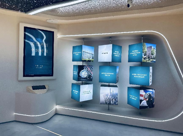 孔雀表業(yè)集團展示中心分為“時光記憶”、“隧道時空”、“制造共鑒”、“孔雀譽行”、“智造未來”五大主題區(qū)域。富有現(xiàn)代化科技特色的整體設計風格,與孔雀表業(yè)集團本身的智造技術實力及未來規(guī)劃達成了巧妙的融合,又在時光敘事與智慧互動的過程中,以沉浸式的方式映射孔雀表業(yè)集團智造化藍圖,讓觀者在時間的流轉更替中感受現(xiàn)代化制造業(yè)工廠的發(fā)展變化,以及孔雀表業(yè)集團在工業(yè)大數(shù)據(jù)、綠色工廠、智能智造等多方面的發(fā)展?jié)摿Α?/div>