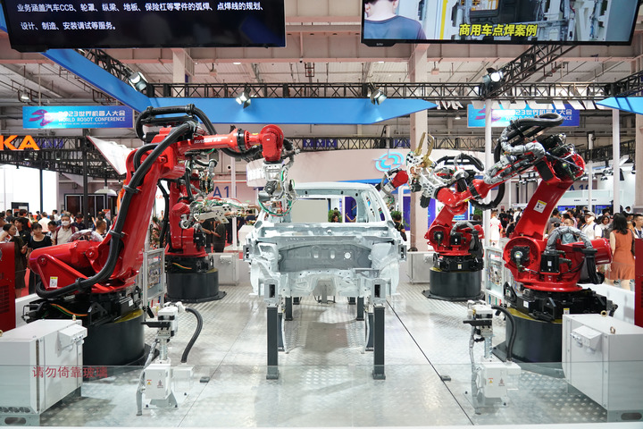強(qiáng)勁靈活的手腕,高扭矩的設(shè)計(jì),4個(gè)紅色的機(jī)械臂上下?lián)]舞,為汽車車身進(jìn)行點(diǎn)焊作業(yè)……在2023世界機(jī)器人大會上,沈陽新松公司針對汽車工業(yè)研發(fā)的白車身點(diǎn)焊機(jī)器人工作站引人注目。