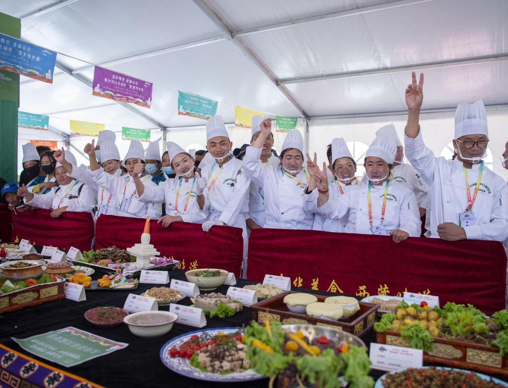 8月21日,“那普社區(qū)農(nóng)牧民代表隊(duì)”制作的參賽食品。(旦增努布 攝)