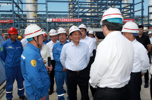 29日上午,孫金龍一行前往山東裕龍石化產(chǎn)業(yè)園,調(diào)研裕龍島煉化一體化項(xiàng)目。該項(xiàng)目位于煙臺(tái)市所轄龍口市,是山東省新舊動(dòng)能轉(zhuǎn)換、現(xiàn)有地?zé)挳a(chǎn)能供給側(cè)改革升級(jí)的重點(diǎn)項(xiàng)目,規(guī)劃產(chǎn)能4000萬噸/年。孫金龍觀看了項(xiàng)目建設(shè)紀(jì)實(shí)片并參觀了裕龍石化展廳,聽取了項(xiàng)目有關(guān)介紹,隨后前往3號(hào)島和2號(hào)島實(shí)地查看一期建設(shè)情況,現(xiàn)場(chǎng)考察項(xiàng)目實(shí)施、設(shè)備工藝、環(huán)境安全等情況,仔細(xì)詢問污染物排放情況和廢水、廢氣及危險(xiǎn)廢物處置措施。他強(qiáng)調(diào),推動(dòng)發(fā)展方式綠色低碳轉(zhuǎn)型,產(chǎn)業(yè)綠色轉(zhuǎn)型升級(jí)是重點(diǎn)和關(guān)鍵。要健全生態(tài)環(huán)境法規(guī)政策標(biāo)準(zhǔn),強(qiáng)化生態(tài)環(huán)境準(zhǔn)入管理,加快促進(jìn)產(chǎn)業(yè)結(jié)構(gòu)調(diào)整優(yōu)化,通過高水平保護(hù)不斷塑造發(fā)展的新動(dòng)能、新優(yōu)勢(shì)。要指導(dǎo)支持企業(yè)開展綠色低碳技術(shù)改造,嚴(yán)格落實(shí)環(huán)評(píng)審批要求和相關(guān)環(huán)保標(biāo)準(zhǔn)措施,確保環(huán)保設(shè)施建設(shè)到位、規(guī)范運(yùn)行和達(dá)標(biāo)排放,切實(shí)做好環(huán)境風(fēng)險(xiǎn)防范處置工作。
