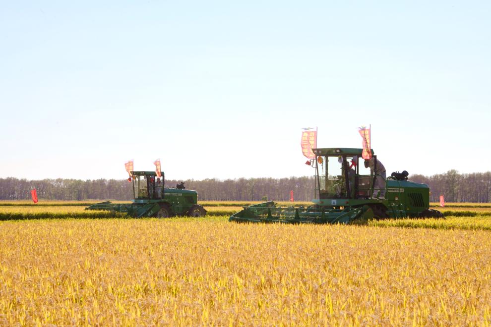 金秋九月,北大荒千里沃野一片金黃。在北大荒集團(tuán)軍川農(nóng)場有限公司福源管理區(qū)水稻地塊,一臺臺收割機(jī)、割曬機(jī)正在進(jìn)行收獲作業(yè)。種植戶楊明成在農(nóng)技人員的指導(dǎo)下率先開鐮,采取直收和割曬拾禾相結(jié)合的方式進(jìn)行收獲。