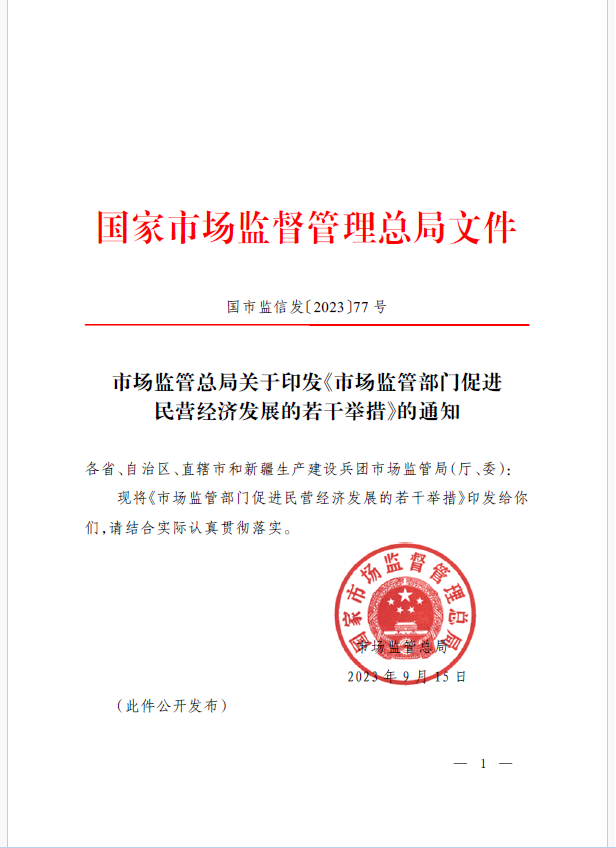 9月18日,市場監(jiān)管總局正式發(fā)布《市場監(jiān)管部門促進(jìn)民營經(jīng)濟發(fā)展的若干舉措》。這是7月14日《中共中央 國務(wù)院關(guān)于促進(jìn)民營經(jīng)濟發(fā)展壯大的意見》出臺以來,市場監(jiān)管部門貫徹落實黨中央、國務(wù)院決策部署出臺的制度舉措,對提振民營經(jīng)濟發(fā)展信心,依法規(guī)范和引導(dǎo)民營資本健康發(fā)展具有重要意義。