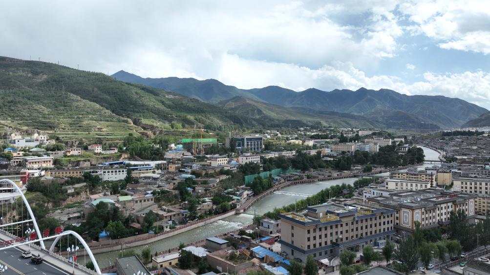 2023年8月24日,無人機拍攝的同仁市隆務(wù)河景色。(新華社記者張宏祥 攝)