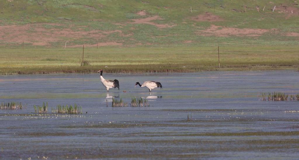 2022年7月1日,在河南縣境內(nèi)活動的黑頸鶴。(才項南加 攝)