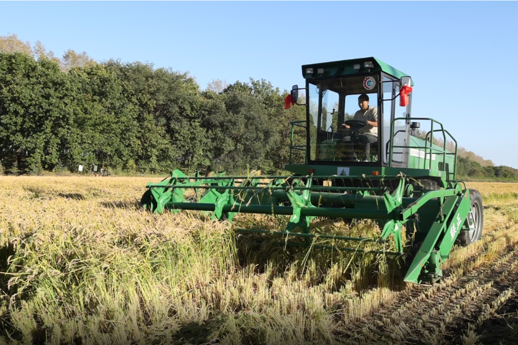 王利民說,在水稻成熟度和食味最適宜的時候斬斷稻穗,養(yǎng)分停止供應,可以有效減少因過度成熟掉粒造成的機收損耗和食味變化,讓稻米香氣更足,品質更高。