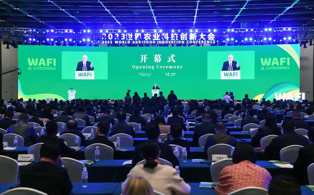 11月3日,世界糧食獎(jiǎng)基金會(huì)榮譽(yù)主席肯尼思·奎因在2023世界農(nóng)業(yè)科技創(chuàng)新大會(huì)開幕式上致辭。新華社記者 任超 攝