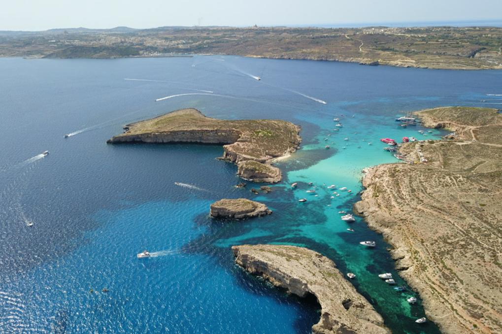 這是2023年7月7日在馬耳他科米諾島拍攝的海島風(fēng)光(無人機(jī)照片)。新華社記者陳文仙攝