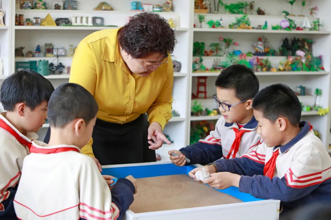 心理教師在心理輔導(dǎo)室陪學(xué)生一起擺放沙盤 / 陳為 攝