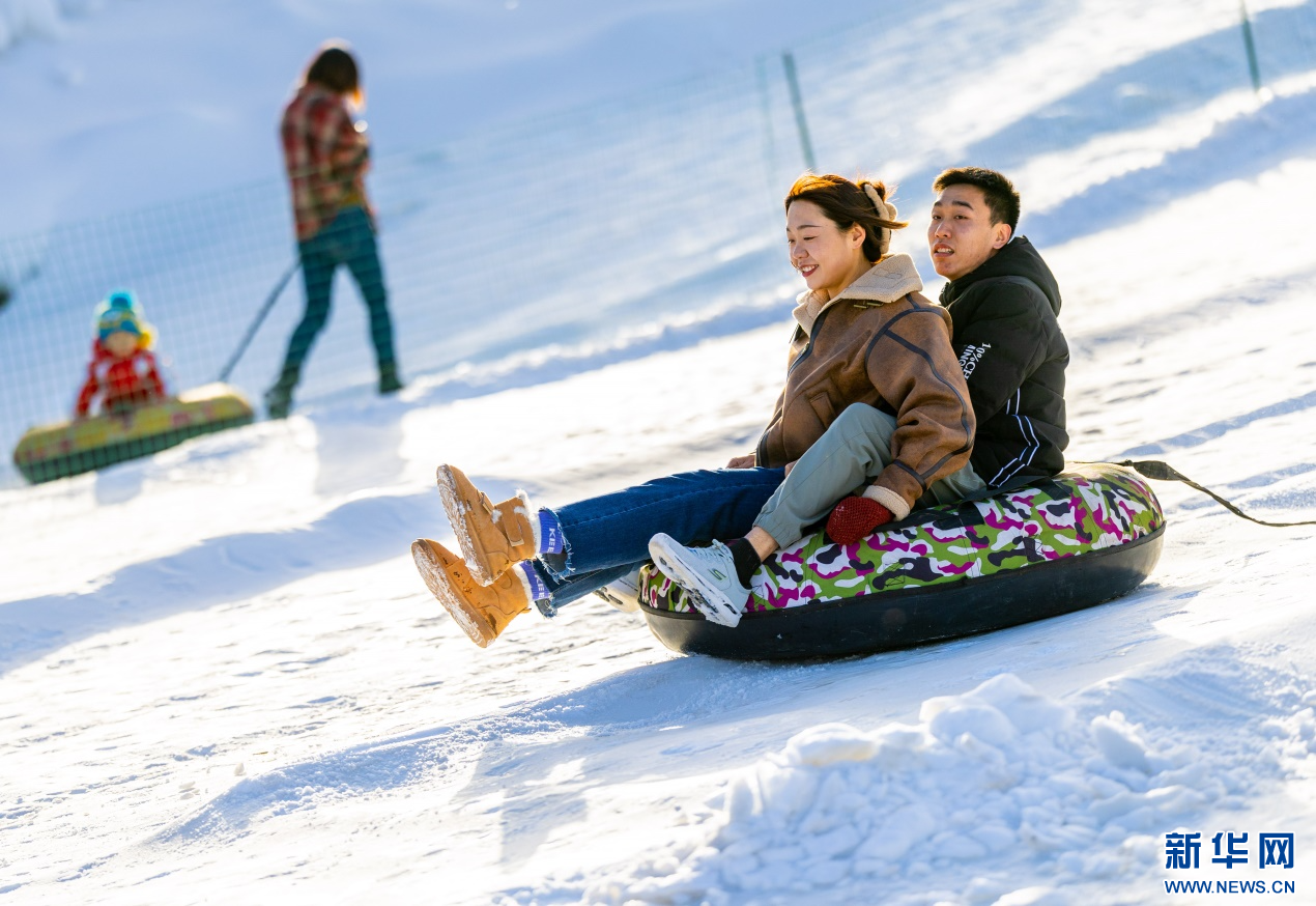 12月7日,家長陪伴孩子在呼和浩特市玉泉區(qū)大庫倫村“冰雪大世界”內(nèi)玩雪圈。新華網(wǎng)發(fā)(丁根厚 攝)