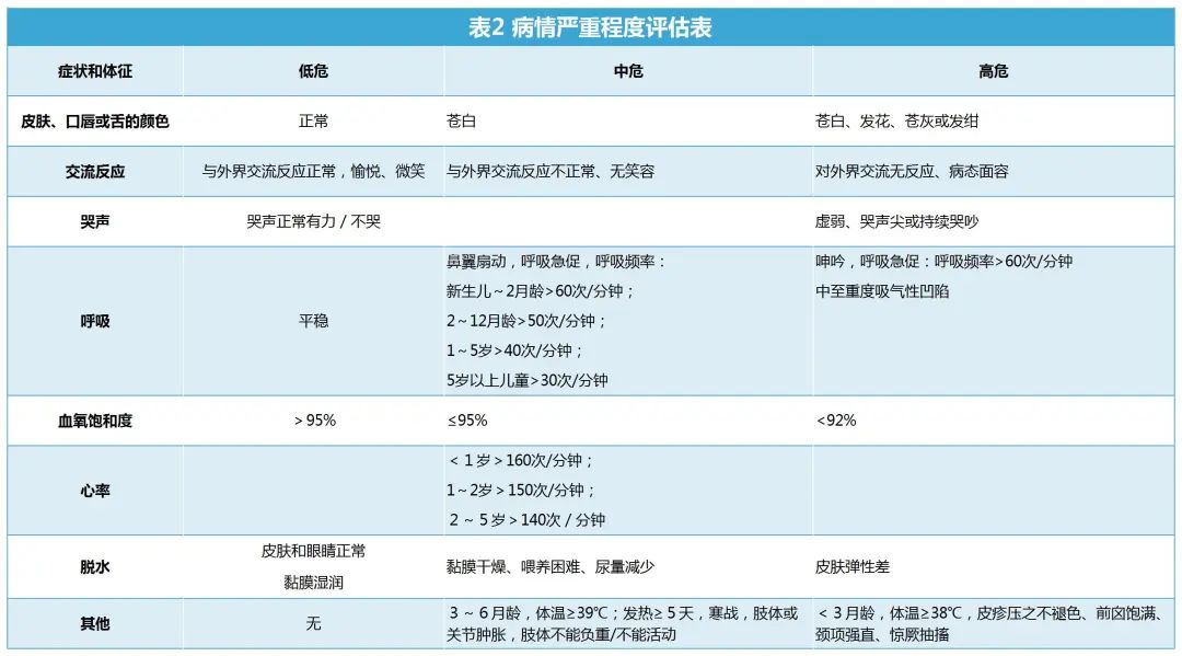 注:存在高危中任意一項(xiàng)表現(xiàn),即判定為高危;存在中危中任意一項(xiàng)但無高危表現(xiàn),即判定為中危。低危的發(fā)熱兒童可在家中護(hù)理;中危的發(fā)熱兒童,應(yīng)盡快就診;高危的發(fā)熱兒童,應(yīng)立即就診。