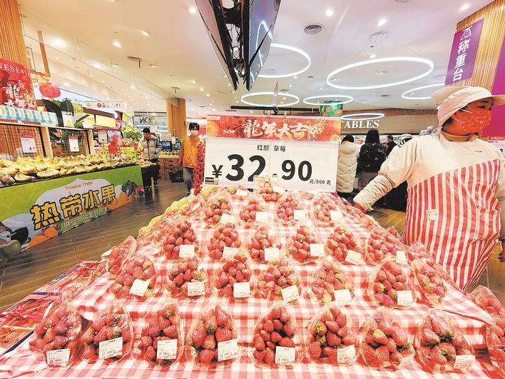 在連鎖超市里,頂級的紅顏草莓售價為32.9元一斤,這是在周末活動價的基礎(chǔ)上提高了的價格。“現(xiàn)在最低29.9元一斤,銷量增長得很快。”導(dǎo)購員介紹,紅顏草莓在去年11月初上市時賣到過59.9元一斤,兩個月過后,跌幅超三成。“今年的草莓果型漂亮、甜度高,價格降得快,對消費者來說是好事。”