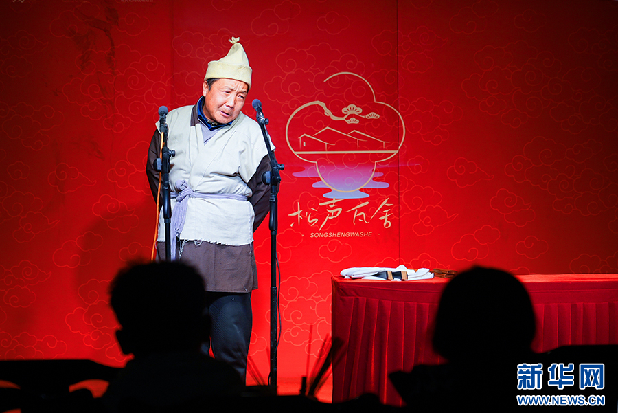 在西安永興坊——陜西非遺文化特色街區(qū),今年52歲的秦腔演員王波,為游客表演國(guó)家級(jí)非遺陜西地方曲藝“眉戶(hù)”經(jīng)典片段《張連賣(mài)布》。新華網(wǎng) 楊喜龍 攝
