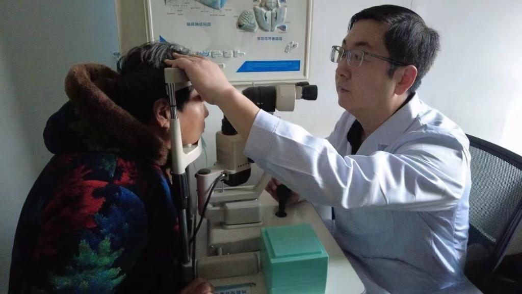 2024年2月20日,青海省人民醫(yī)院眼科副主任醫(yī)師祁恩在為患者診療。(受訪者供圖)