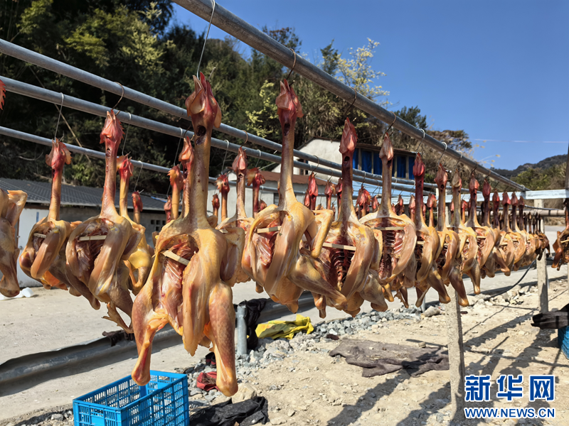 “我們的雞是石垟山上放養(yǎng)的三黃雞,熏制手法也是采用藤橋傳統(tǒng)技藝,很受消費(fèi)者喜愛。”葉林國(guó)指著成排晾曬好的熏雞笑著說,“今年天公特別作美,不僅日曬充足,風(fēng)也足夠大,這樣環(huán)境下晾曬的熏雞風(fēng)味比往年更勝幾分,最近訂單多到都快忙不過來了。”